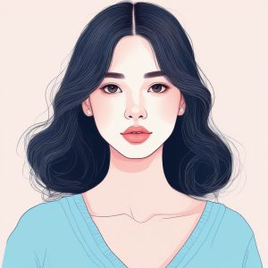 A whimsical, spontaneous exquisite portrait illustration in a Korean doodle style, characterized by intentional rough crayon style lines and colored pencil accents. This hand drawn piece employs cheerful warm colors and light pastel colors. The minimalist solo subject has an expressive, storybook quality, set against a clean solid color background, showing texture on the paper.