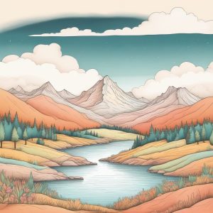 A minimalist hand-drawn illustration of a stylish girl in pastel blue and pink attire, exuding elegance and playfulness. The piece is created with a Hand drawn style featuring paper texture and soft edges, capturing a warm and whimsical storybook atmosphere. The background is solid color, contrasting beautifully with the figure to emphasize the subject.