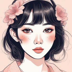 💋时尚宣言!专注于高光泽嘴唇和美丽细节眼睛的动漫肖像线稿。✨手绘插画风格,运用粉彩色调和柔和边缘来平衡线条的硬度。💖纯色背景下,少女的精致妆容就是最大的亮点!