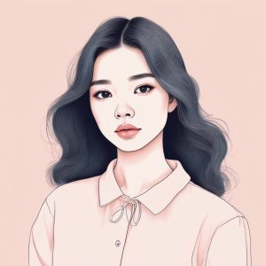 A hand drawn illustration of a cute fashionable girl portrait in minimalist line art, soft and gentle (ruan meng) style, featuring fluid comic line flow. It utilizes pastel colors in pink and blue hues, integrated with warm colors. The coloring uses light crayon style and colored pencil strokes. The piece embodies a whimsical storybook style and soft edges. The image emphasizes the subtle grain of paper texture and textured paper. Set against a clean, solid color background.