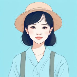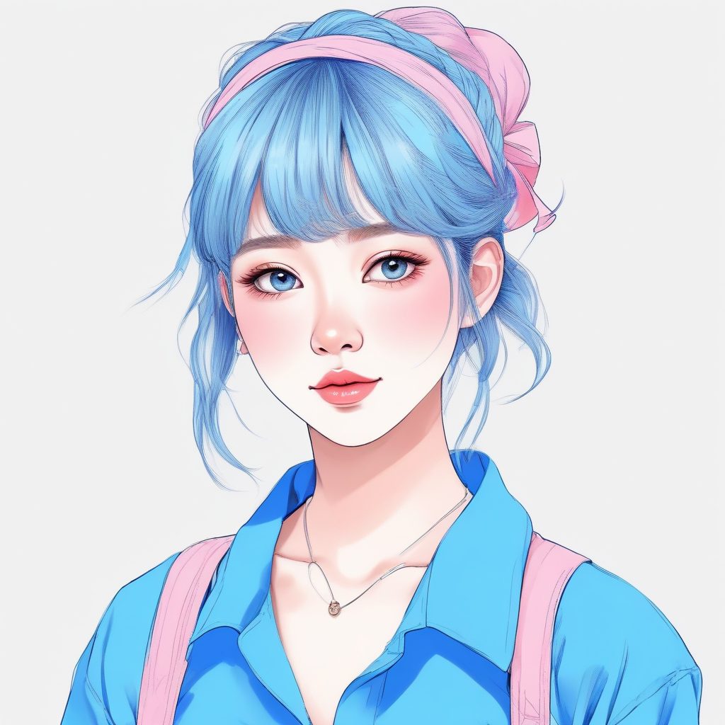 Minimalist hand drawn illustration, Japanese cute fashion girl avatar, prominent manga line art, colored pencil fill, crayon style texture, soft edges, pastel pink and blue palette, featuring a girl with an iconic hairstyle, high resolution, solid light blue background.