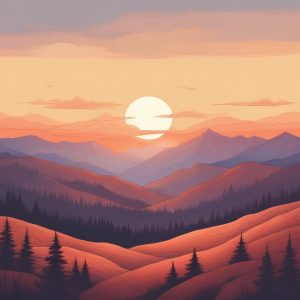 A minimalist illustration of snowy mountains and a solitary wooden cabin, rendered in a hand drawn colored pencil style with fine strokes and soft edges. The colors are pastel colors and warm colors, achieving a nostalgic storybook style. Emphasis on paper texture and textured paper effect.