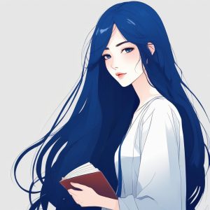 A captivating solo subject hand drawn illustration in a minimalist style exquisite portrait. Using a monochromatic blue palette, it depicts a girl with a thoughtful expression in profile. The style features colored pencil and crayon style textures on heavy textured paper. Clean lines against a clean solid color background of deep cobalt blue. A poetic storybook style piece that is both simple and profound.