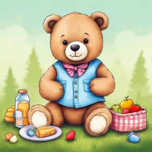 🍯小熊的野餐!治愈系蜡笔风Q版插画,可爱头像素材